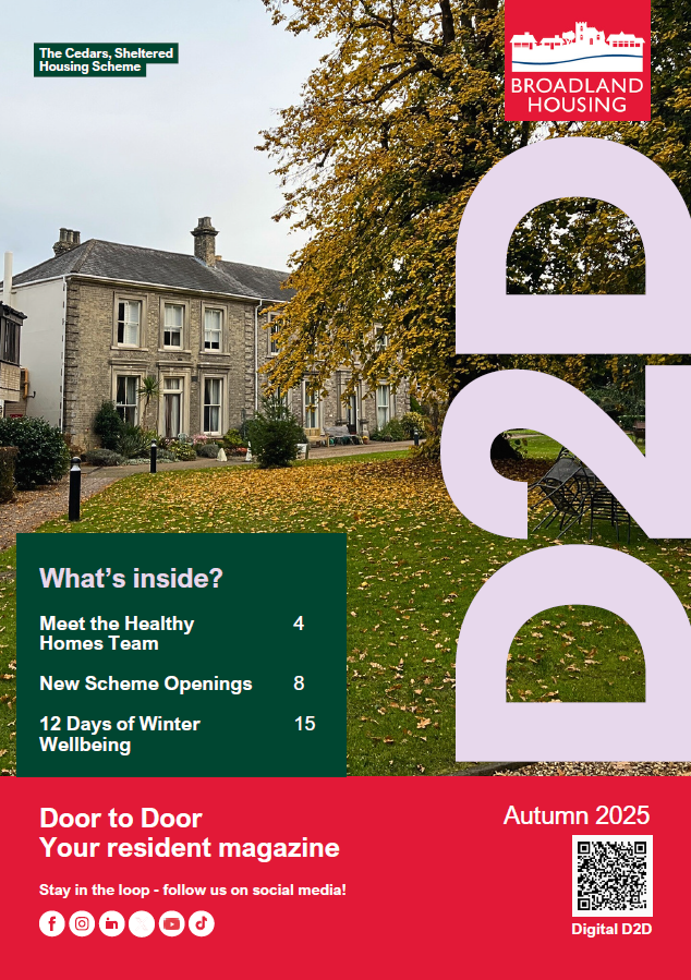 Door to Door is our seasonal magazine for Broadland residents, published 4 times a year. It contains the latest news about your home and services, special features, tips and tricks, competitions and much more!