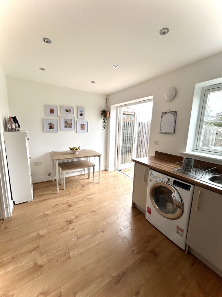 - Kitchen with fitted oven and hob, fridge freezer and dishwasher